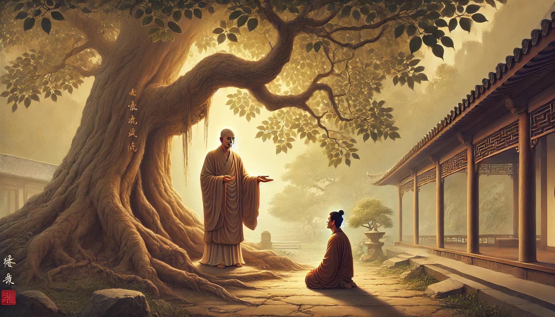 百丈禅师通过野鸭飞过的场景启发弟子的觉知。