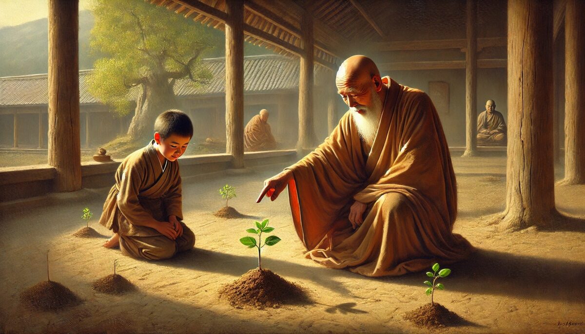 脚下的土 Usslmc77Dec 23, 2024 脚下的土 背景: 赵州禅师用脚下的土比喻觉悟的本质。 故事内容: 弟子问赵州:“师父,觉悟在哪里?” 赵州低头指着脚下,说:“在土里。” 弟子不解:“土中如何有觉悟?” 赵州答:“脚踏实地,觉悟就在每一步中。” 禅意: 觉悟不是遥不可及,而在于踏实的实践与每一个当下的体验。 Post Views: 158 <span class="nav-subtitle screen-reader-text">Page</span> Previous Post种树Next Post破衣垢 Related Posts 脚步悟道 临济通过脚步声让弟子顿悟。 Usslmc77Jan 16, 2025 空钵子 德山禅师用空钵象征心的空性。 Usslmc77Jan 16, 2025 一炷香 云门禅师用焚香的举动点化弟子。 Usslmc77Jan 16, 2025 Leave a Reply Cancel replyYou must be logged in to post a comment.