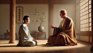 开门即道 Usslmc77Dec 28, 2024 开门即道 背景: 云门禅师通过生活中的细节揭示修行的道理。 故事内容: 弟子问云门:“师父,如何进入修行的门?” 云门回答:“门就在你面前,开了便是。” 弟子不解:“为何我未见门?” 云门说:“因你心门未开。” 禅意: 修行之门就在当下,觉悟取决于内心的开放,而非外界的寻找。 Post Views: 112 <span class="nav-subtitle screen-reader-text">Page</span> Previous Post青山与流水 Next Post明心见性 Related Posts 一字禅 云门禅师用一个字回答修行的奥义。 Usslmc77Jan 12, 2025 无念 慧可禅师用日常经验启发弟子。 Usslmc77Jan 12, 2025 树上安住 鸟巢禅师用自己的生活方式比喻心的安定。 Usslmc77Jan 12, 2025Jan 20, 2025 Leave a Reply Cancel replyYou must be logged in to post a comment.