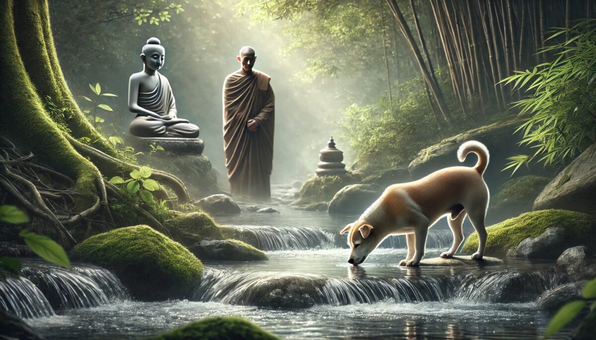 狗喝水 Usslmc77Dec 28, 2024 狗喝水 背景: 南泉禅师用简单的生活比喻点拨弟子。 故事内容: 弟子问南泉:“师父,如何修行?” 南泉答:“狗喝水。” 弟子问:“这是什么意思?” 南泉说:“心随水流,身心自在,不用刻意。” 禅意: 修行不在强求,而在顺应本性,自然随缘,身心安然。 Post Views: 147 <span class="nav-subtitle screen-reader-text">Page</span> Previous Post船上无水 Next Post用心 Related Posts 稻草 南泉禅师用平凡之物展示禅的深意。 Usslmc77Jan 14, 2025Jan 21, 2025 镜与尘 石头禅师以镜与尘的关系点化弟子。 Usslmc77Jan 14, 2025Jan 21, 2025 无声之音 黄檗禅师用无声回答弟子的问题。 Usslmc77Jan 14, 2025Jan 21, 2025 Leave a Reply Cancel replyYou must be logged in to post a comment.