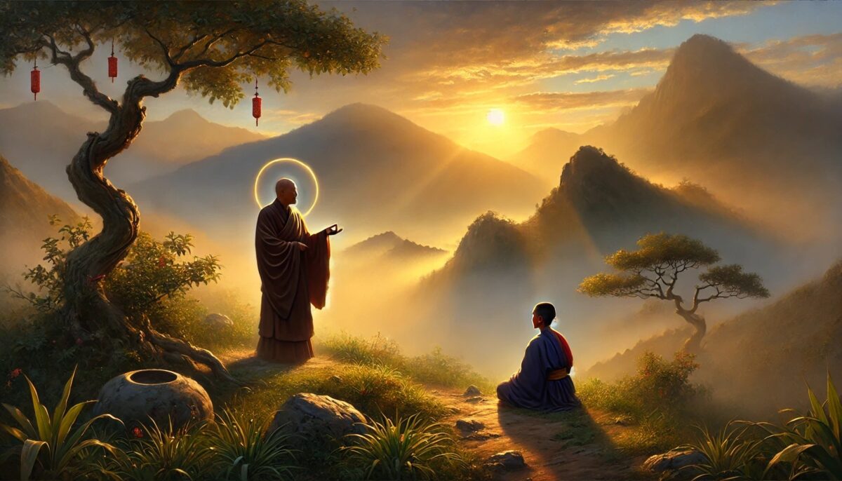德山答:“光来自内,迷雾自解。修行如日出,智慧显现,疑惑便消散。”
