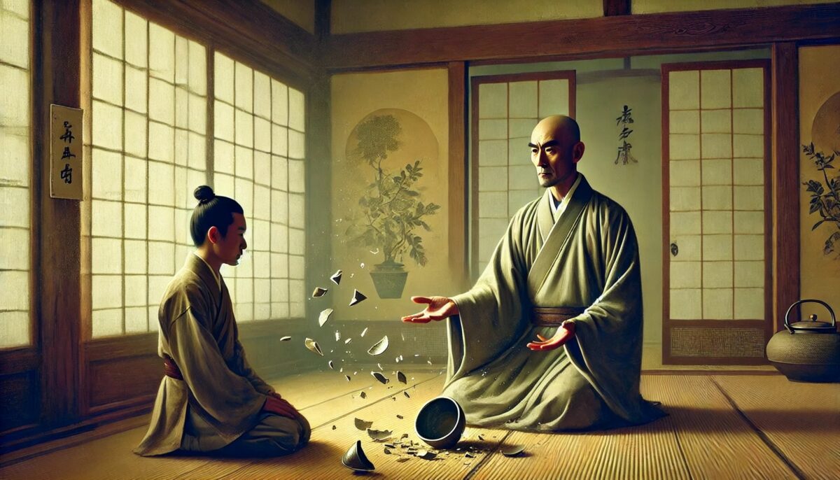 打破茶盏 Usslmc77Dec 31, 2024 打破茶盏 背景: 云门禅师用直接的动作打破弟子的执念。 故事内容: 一名弟子端着一只茶盏,问云门:“师父,如何才能觉悟?” 云门二话不说,猛地打碎了茶盏。 弟子震惊,问:“师父,为何如此?” 云门说:“你若执着于茶盏,便永远见不到真正的茶水。” 禅意: 觉悟在于放下执着,超越形式与工具,直观本质。 Post Views: 156 <span class="nav-subtitle screen-reader-text">Page</span> Previous Post空手入林Next Post破舟入海 Related Posts 脚步悟道 临济通过脚步声让弟子顿悟。 Usslmc77Jan 16, 2025 空钵子 德山禅师用空钵象征心的空性。 Usslmc77Jan 16, 2025 一炷香 云门禅师用焚香的举动点化弟子。 Usslmc77Jan 16, 2025 Leave a Reply Cancel replyYou must be logged in to post a comment.