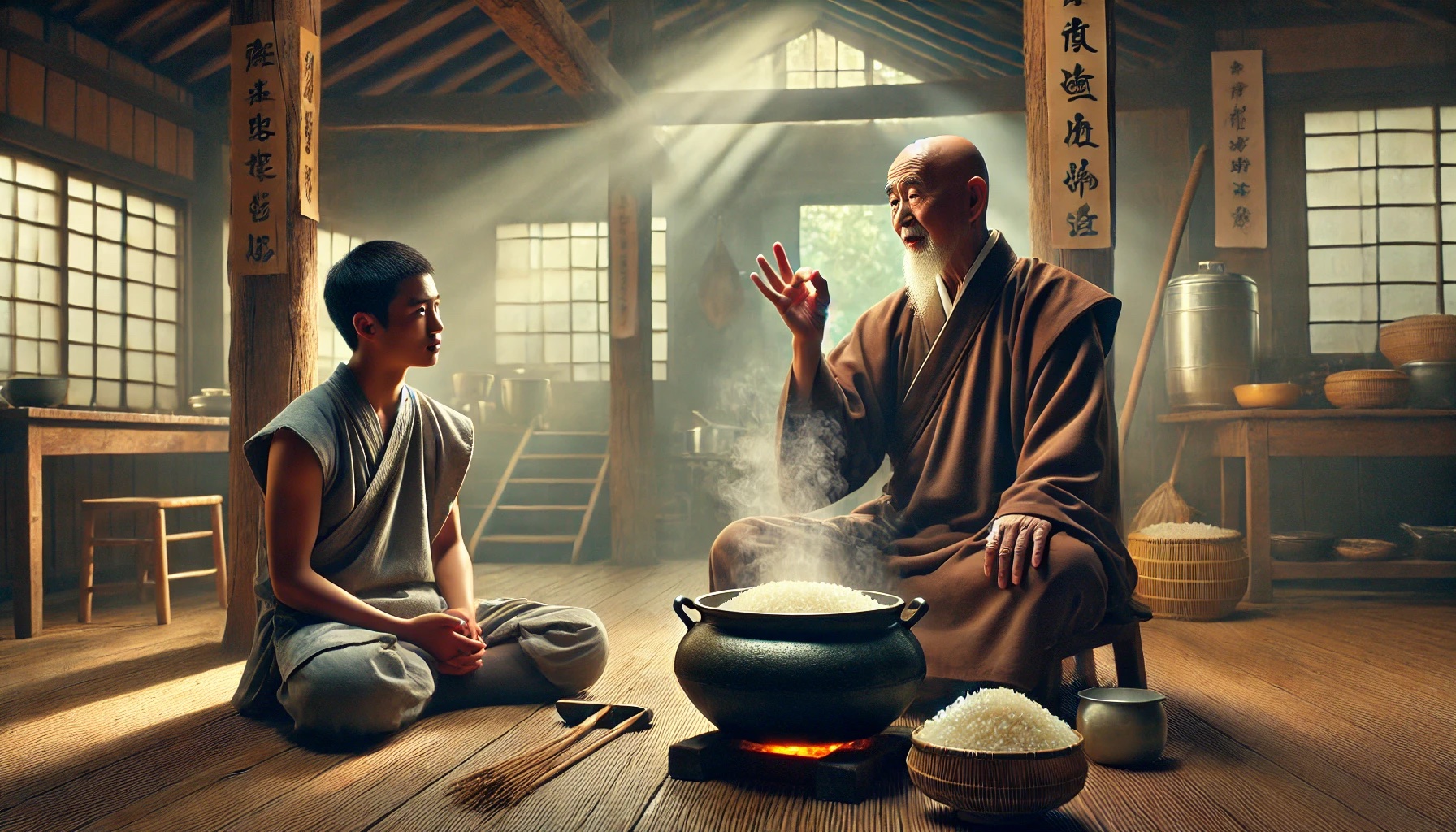 米与饭 Usslmc77Jan 15, 2025Mar 16, 2026 米与饭 背景: 黄檗禅师用生活中的比喻说明修行的过程。 故事内容: 弟子问黄檗:“师父,修行的意义是什么?” 黄檗反问:“米是如何变成饭的?” 弟子回答:“加水煮熟。” 黄檗点头:“修行如煮饭,心如米,定如水,火候到了,自然成熟。” 禅意: 修行是一个自然的过程,需耐心等待,不能急于求成。 Post Views: 206 <span class="nav-subtitle screen-reader-text">Page</span> Previous Post每周一素:红豆沙糯米团 Next Post敲木鱼 Related Posts 鱼跃龙门 石头禅师用鱼跃龙门的象征解释修行的飞跃。 Usslmc77Jan 18, 2025 滴水入海 黄檗禅师用水滴归海比喻修行的归一。 Usslmc77Jan 18, 2025 雪中修行 慧可禅师用雪中禅坐的体验讲述修行的坚定。 Usslmc77Jan 18, 2025 Leave a Reply Cancel replyYou must be logged in to post a comment.