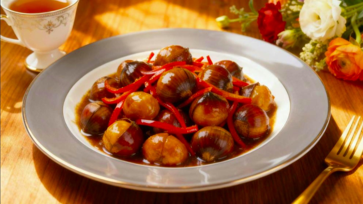 This is a rich and tender vegetarian dish, where chestnuts absorb the savory braising sauce, resulting in a flavorful and melt-in-your-mouth texture.