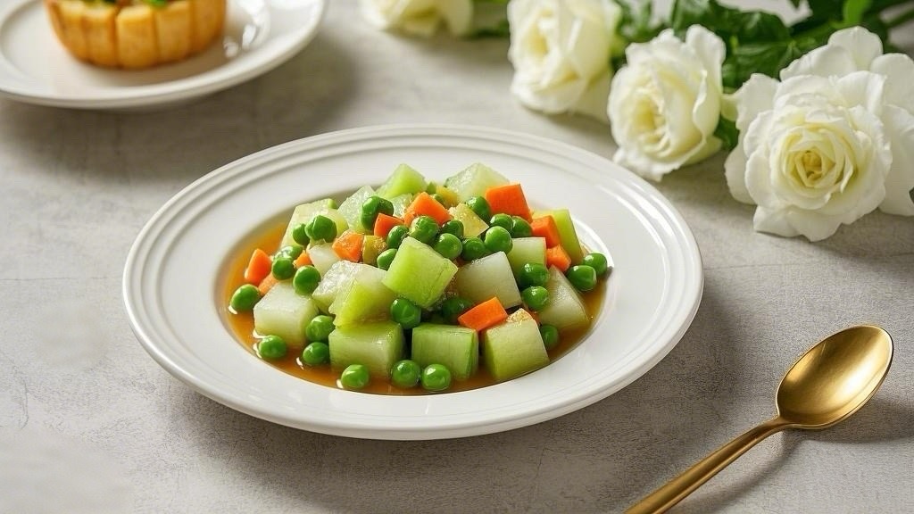 Weekly Buddhist Cuisine Menu:Diced Gourd with Green Peas