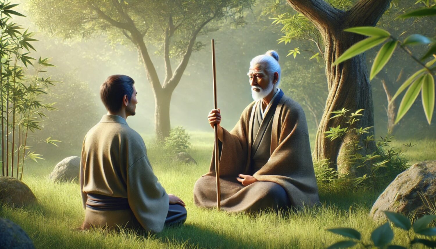 百丈禅师用一根竹竿启发弟子对修行境界的超越。